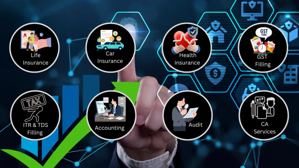 Home India's No. 1 LifeGuard Finance SolutionsSmart Taxation & service Platform With Expert Financial Solutions Insurance,Taxation and Financial services for Individual & Business Apply Now Grow Your business with minimal Cost 10000+ business man grow our business faster with smart and low-cost strategies Find the right service for you Financial Freedom Starts Hear Car, Health and Life Insurance GST Registration & Filling ITR & TDS Filling CMA Data & Balance sheet External & Stock Audit ROC and Due Diligence
